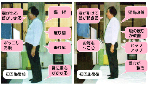 安静にすれば、2、3回の施術で動けるようになりますが、神経に響く痛みが入ると1週間から10日位掛かることもあります。動きに支障がある時は、なるべく続けて来院されると早く確実に回復します。 |